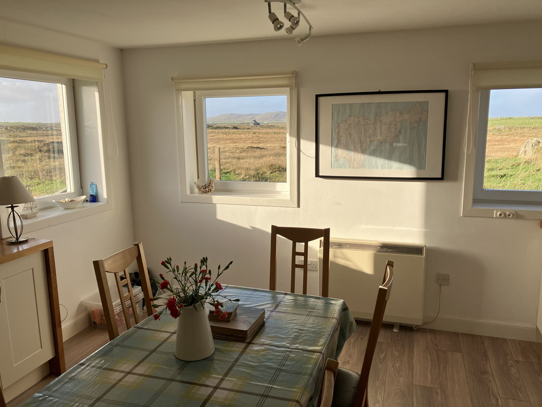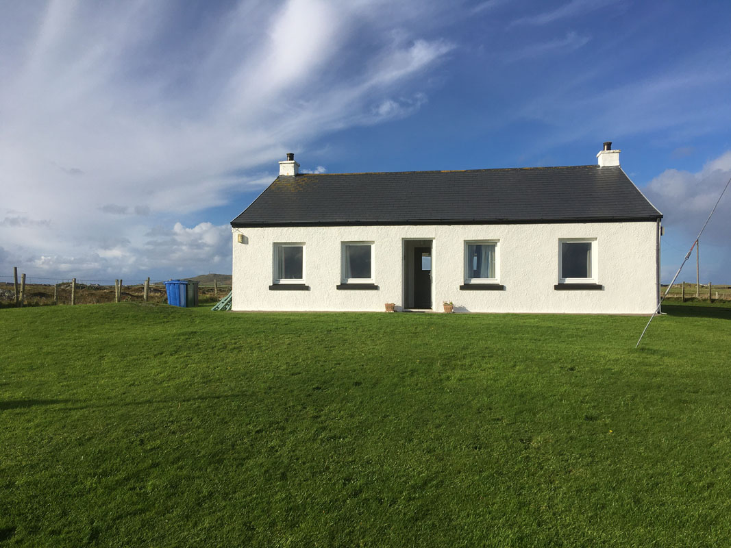 From the airport, turn right at the T junction at the end of the airport road and follow the signs for Balephetrish and Cornaig. On arriving at a second T junction at the end of Balephetrish beach, turn left and continue on passing the turning to Cornaigbeg on the left. The house can be found within 500m on the left hand side.