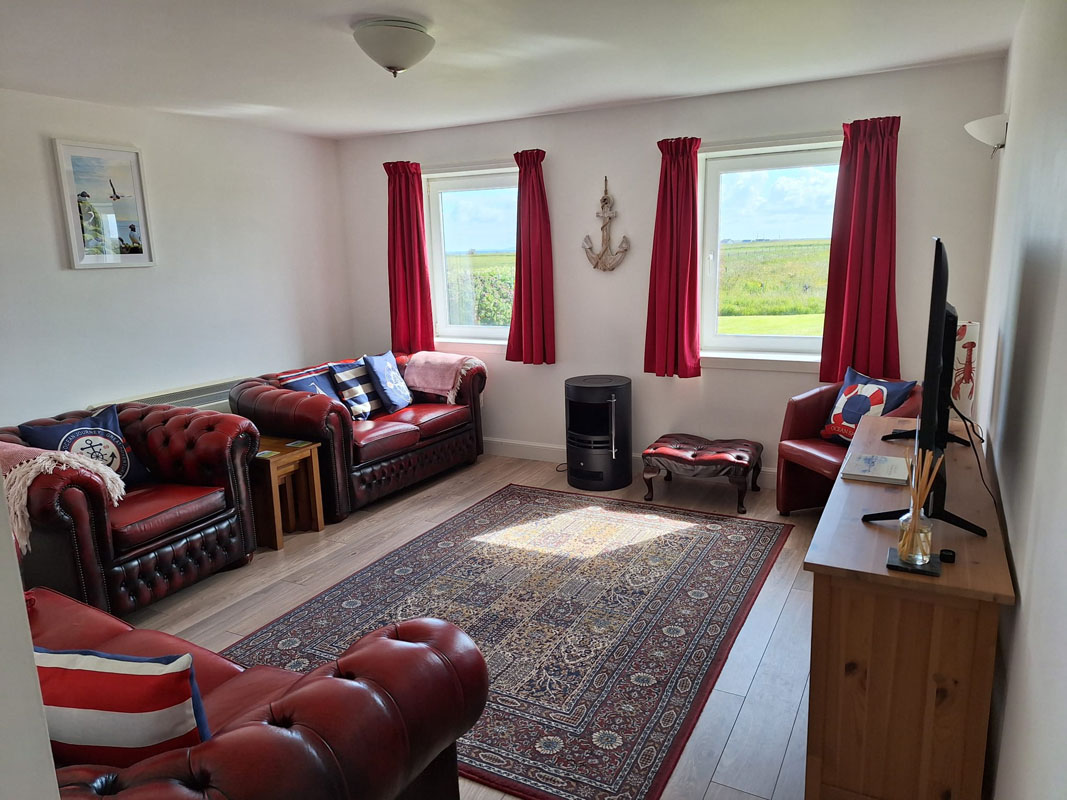 The Sitting Room with kitchen off, is large and comfortable with leather furniture, laminated flooring and electric stove and radiators. It offers Freeview TV with HDMI connection for guests devices, an Internet connection and a selection of games and books for guest use.